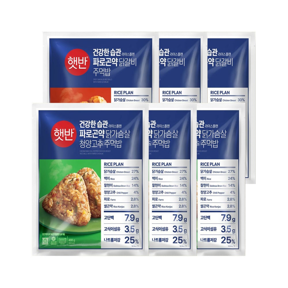 햇반 파로곤약 닭가슴살 청양고추 주먹밥 400g x3+파로곤약 닭갈비 주먹밥 400g x3