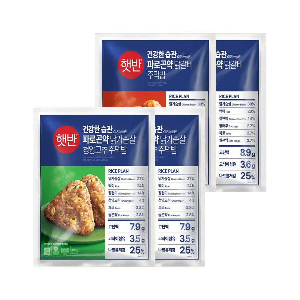 햇반 파로곤약 닭가슴살 청양고추 주먹밥 400gx2개+파로곤약 닭갈비 주먹밥 400gx2개