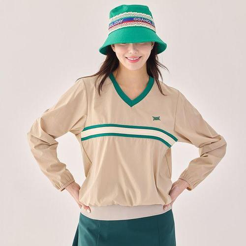 [제이투제이]여성골프웨어 에센셜 브이 가로배색 티셔츠