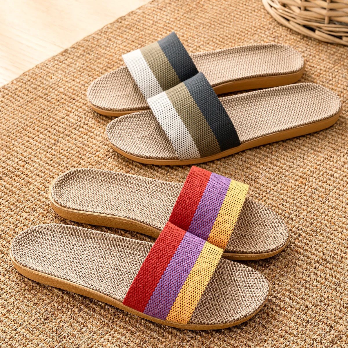 패브릭 남녀공용 슬리퍼 여름 슬립온 홈 슬리퍼 통기성 부드러운 실내 슬리퍼