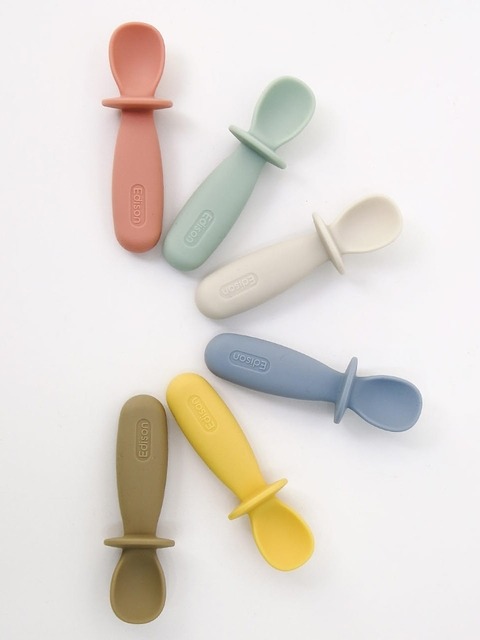 실리콘 셀프 피딩 유아 스푼 포크 세트 5colors