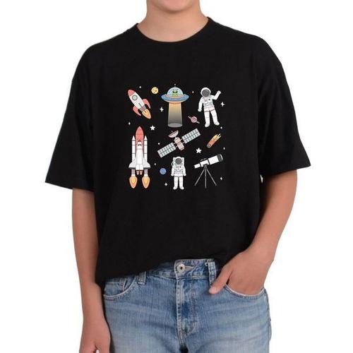[에이치플러스몰]길단 반팔 USA핏 우주인 우주선 로케트 인공위성 외계인 망원경그림 다양한색상 전사이..