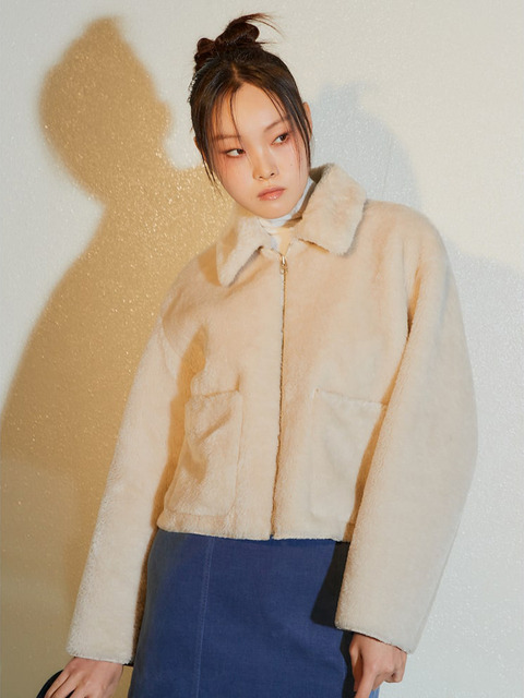 [구호플러스] Volume Sleeve Faux Fur Crop JacketIvory (KE3X3VM010)