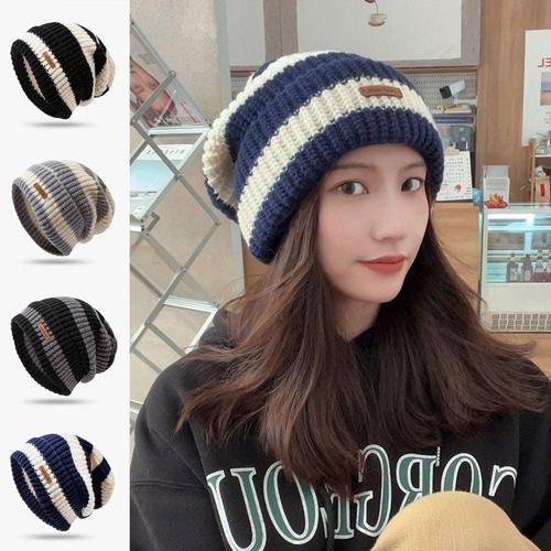 [BZJL5VNU_4C]굵은 여성 모자 스트라이프 빅 비니 깔끔한