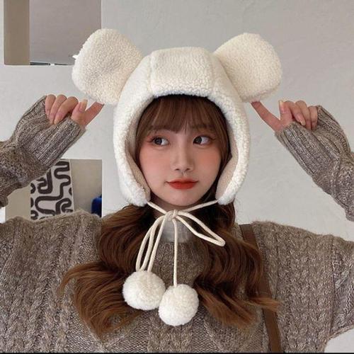 포근한 겨울 방한 귀마개 털 모자 여성 여름 곰돌이 WFIL2V3