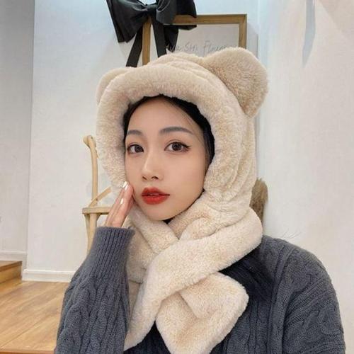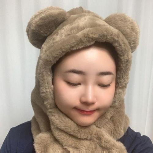 곰돌이 양털일체형 귀마개 모자 목도리세트 여자 WFIL2TG