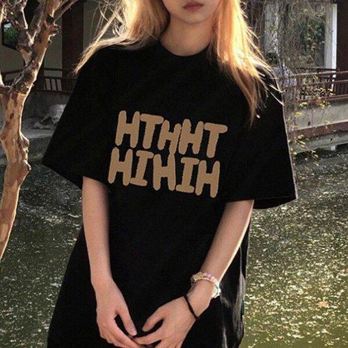 [모노무드]LMO 여성용 릴랙스핏 그래픽프린트 원형넥반소매 반팔티 실켓티 베이직 박스티