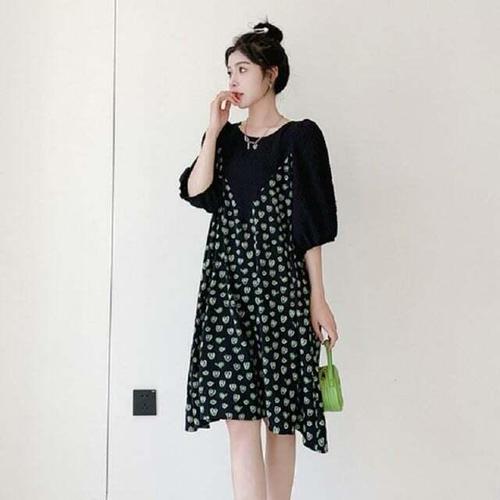 [셀럽하우스]그린 XQJR9777 인기 루즈핏 하트 미디 감성 원피스 퍼프 데일리