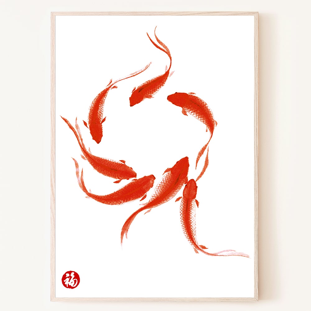 풍수 돈들어오는 동양화 액자 _금붕어 수묵화