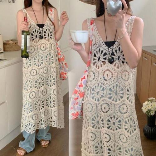 [신상오픈런]여성 여름 바캉스 스타일 레이어드 그물 스트랩 긴 원피스