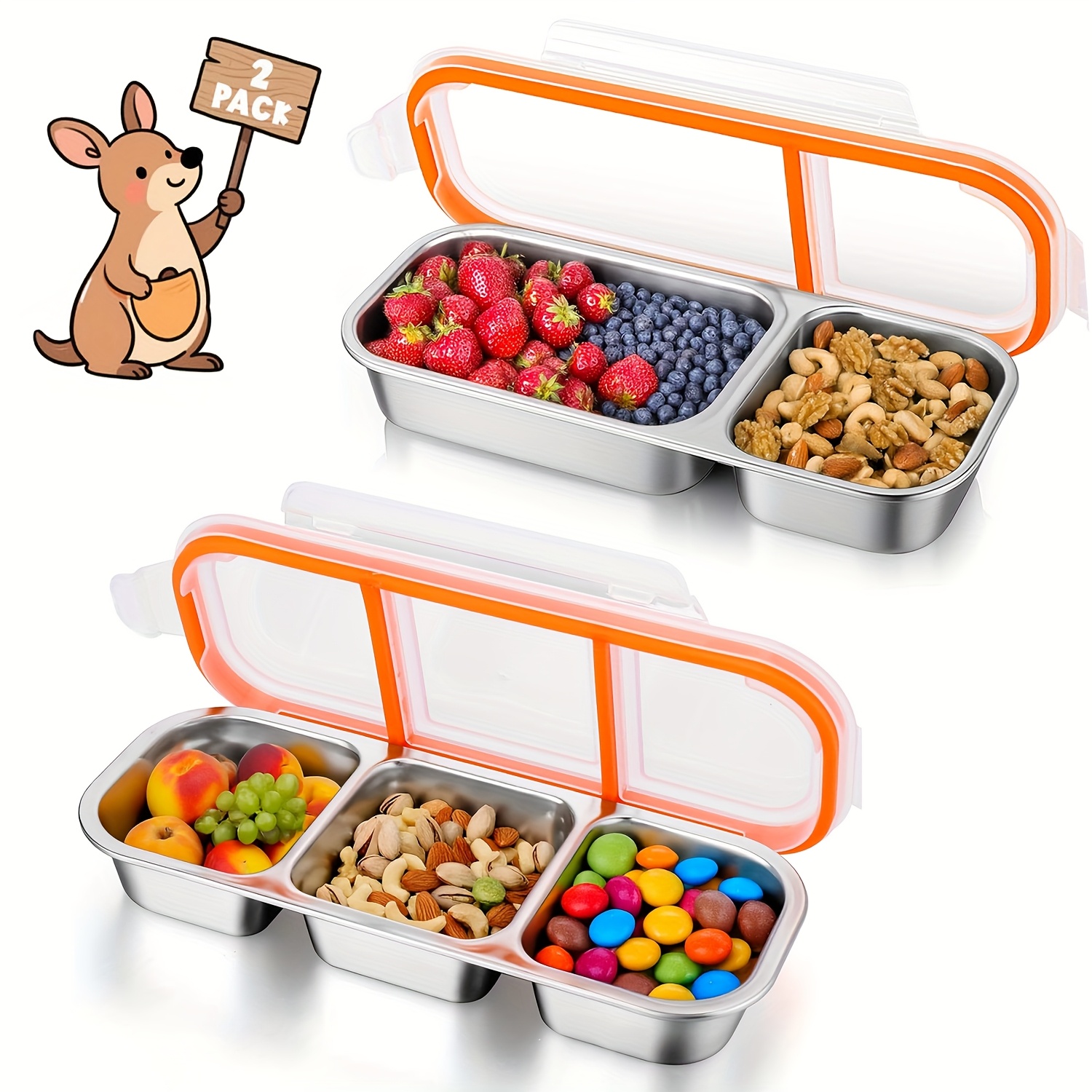 TEMU 3단 스테인리스 스냅 컨테이너 - 플립탑 뚜껑, 밀폐 식품 보관함, 설거지기 안전, 공간 절약형 오피스/학교/여행용 주방 정리함, 고강도 304 스테인리스 제작, 모던 메탈릭 마감|트라이탄밀폐용기