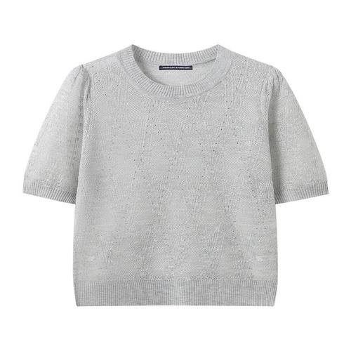 [미니멈에브리데이][미니멈 에브리데이]글리터 다이아 패턴 시스루 반팔 니트 (EC2KT004D)