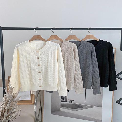 [다잇템]여자 스웨터 부드러운 금장단추 꽈배기 가디건