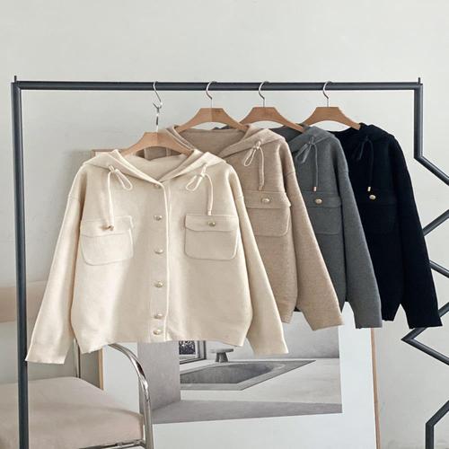 [옷자락]여자 캐주얼 금장단추 스트링 후드 긴팔 가디건