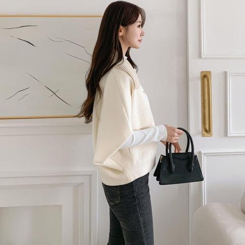 [디바옴므]금장 지퍼라인 하이넥 기모안감 집업 니트 가디건 자켓 겨울 골프