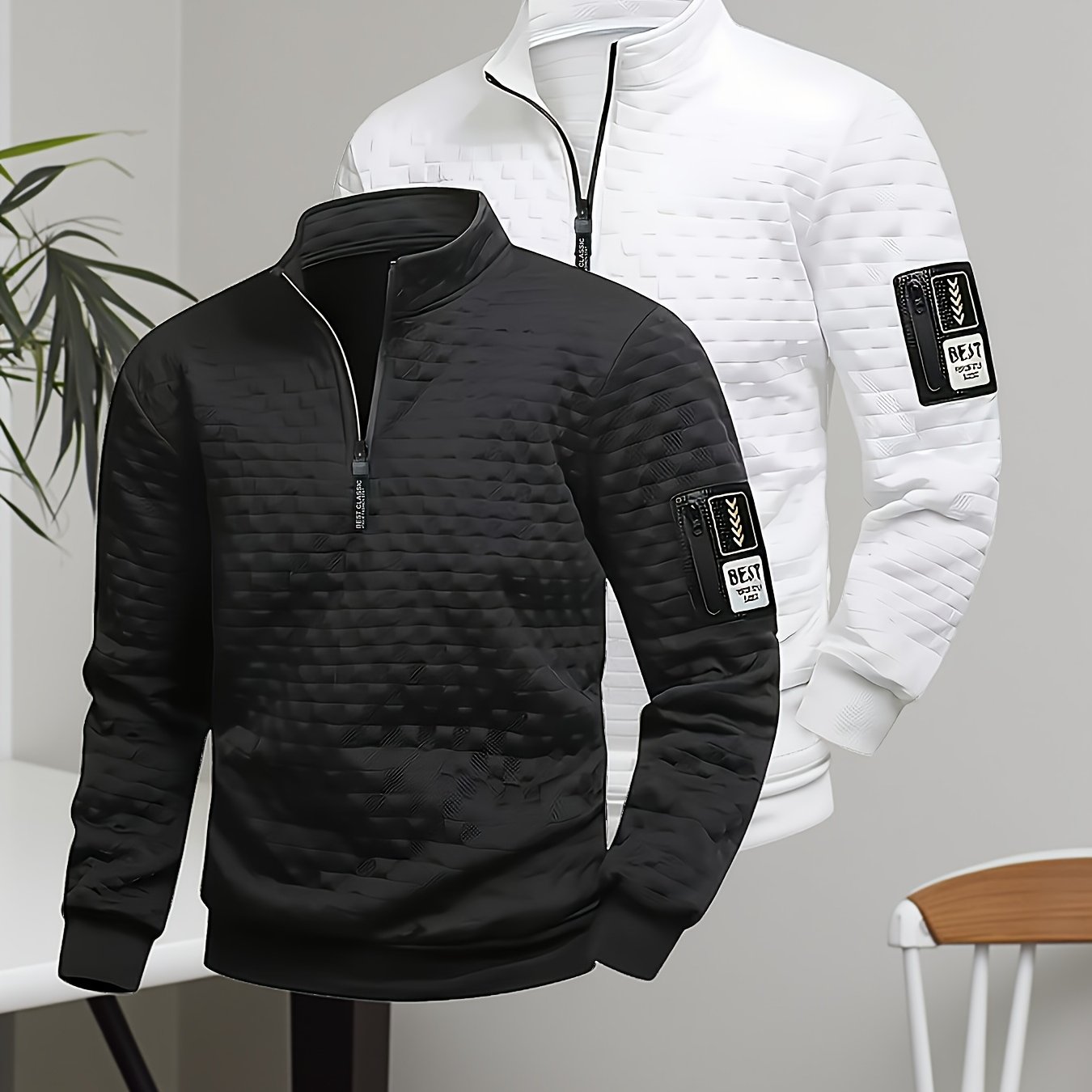 TEMU [Yulemi Obm] 남성용 - 3가지 색상으로 제공 - 블랙 - 화이트 - 그레이 - 라센 헨리 셔츠, 지퍼형 라운드넥, 세탁기 사용 가능, 간편한 스포츠웨어 - 지퍼 포함, 폴리에스터 스트레치 - 탄성 커프스, 봄/가을에 적합