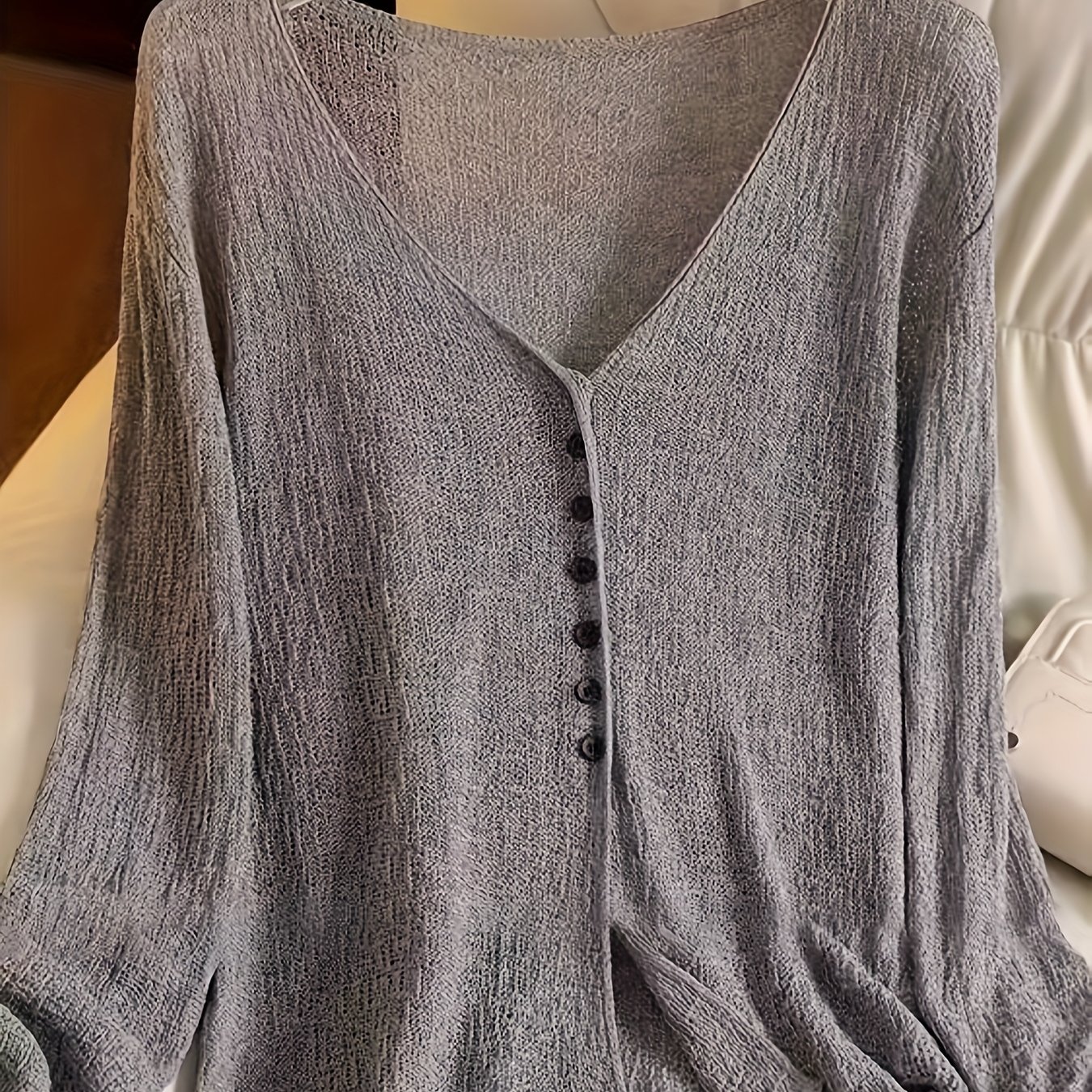 TEMU 봄, 여름, 가을용 V넥 오픈 프론트 카디건
