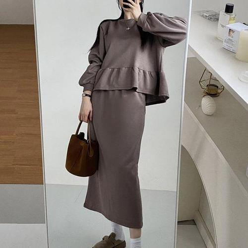 [셀러허브_여성트랜드패션]빅사이즈 511 기모프릴롱스커트세트 DPOV624