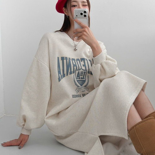 플러리싱 / 기모 포근 레터링 롱 원피스 플러리싱