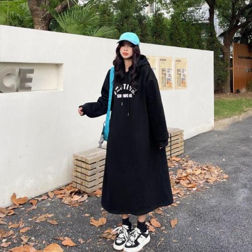 캐주얼원피스 원피스 기모 롱 후드 루즈핏 HH-B100 (3lQDn)