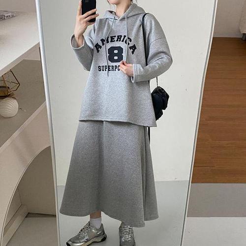 [셀러허브_여성트랜드패션]빅사이즈 511 기모후드티롱치마세트 DBAV558