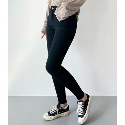 Neige 여성 가을 겨울 기모 스판 편한 슬림핏 스키니 면 바지