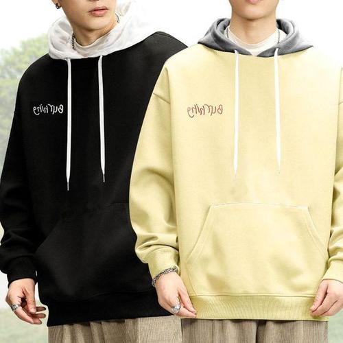 [에이치플러스몰]레터링 후드티 남자 기본핏 배색 기모 긴팔티