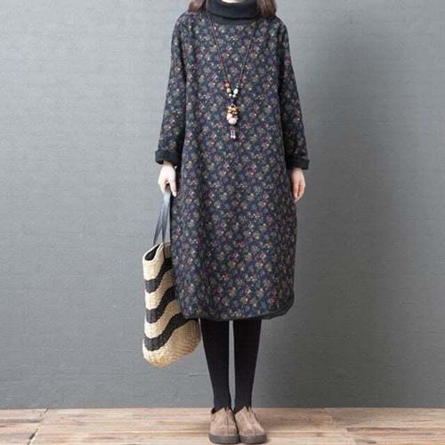 [셀럽하우스]터틀넥 CXVK4629 은창)플라워 캐주얼 기모 포근 필수템 원피스