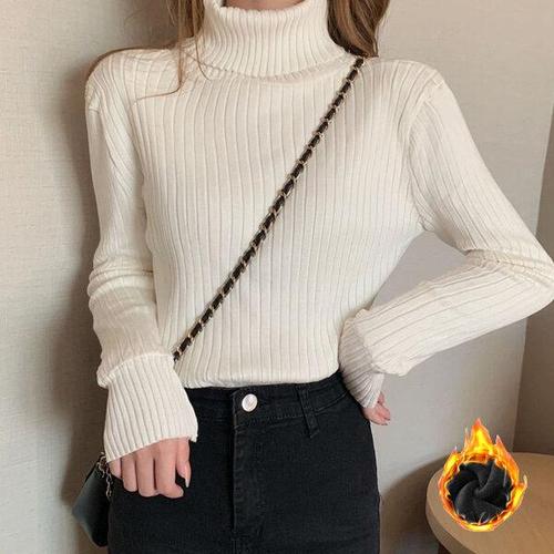 [굿쇼핑몰_의류]4컬러 페미닌 기모 목폴라티 긴팔 슬림 니트