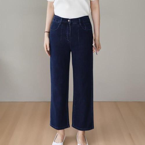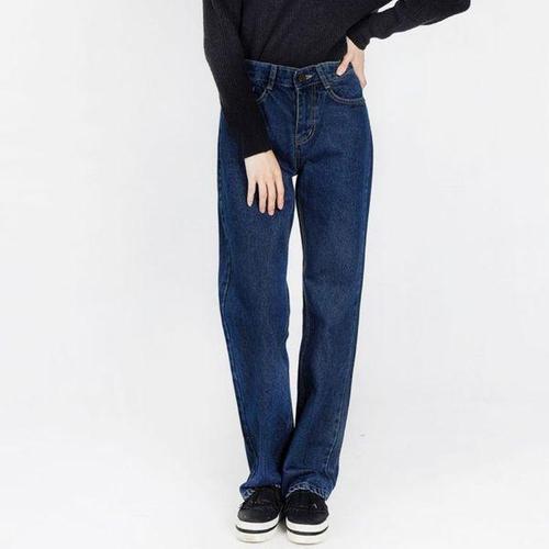 [에이치플러스몰]기본 일자 스타일 진청 와이드핏 워싱 여성 청바지
