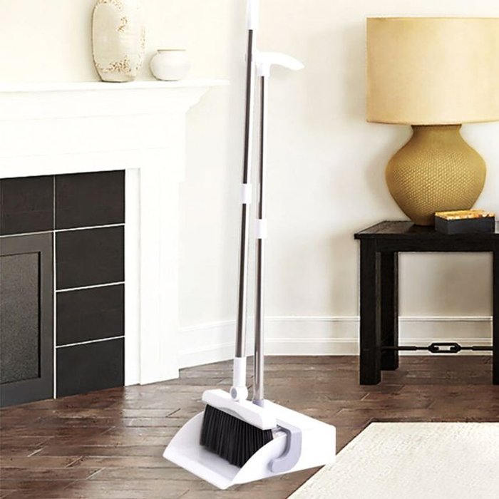 월드크린 심플리 스탠드 빗자루 쓰레받기 세트 그레이 쓰레받이 청소 용품 긴 실내