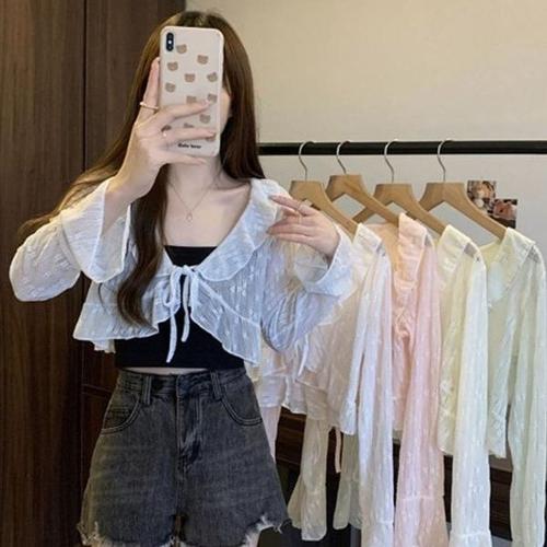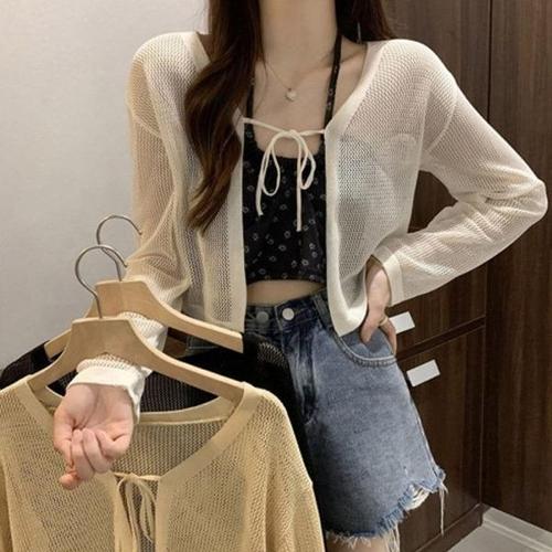 [엄지척]여자 얇은 망사 끈 숏가디건 봄 여름 시스루 가디건_19801432_667501