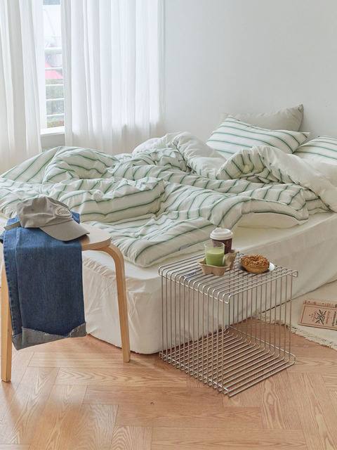 [깃든] 부드러운 몽그리 스트라이프 차렵이불세트