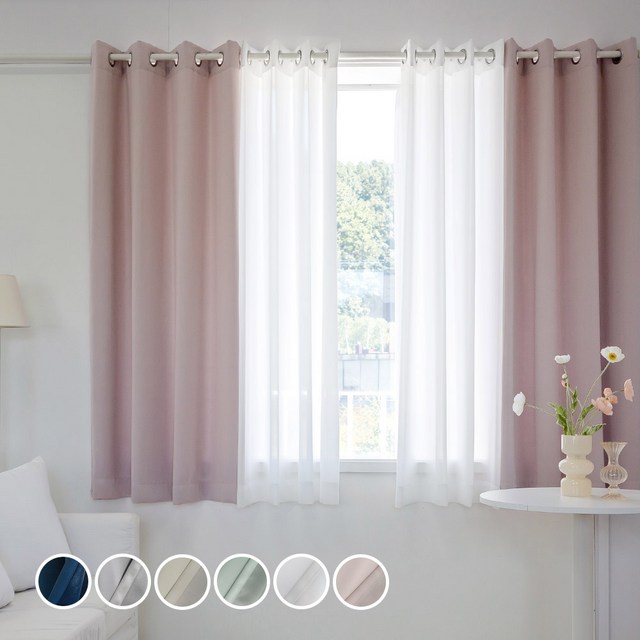 [까르데코] 봄 사계절 암막+레이스 이중커튼 4장세트 봉포함 21종 (작은창/안방/거실창)