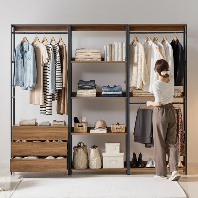 [까사미아] 뉴로브 에센셜 드레스룸세트 196cm 3단 행거형