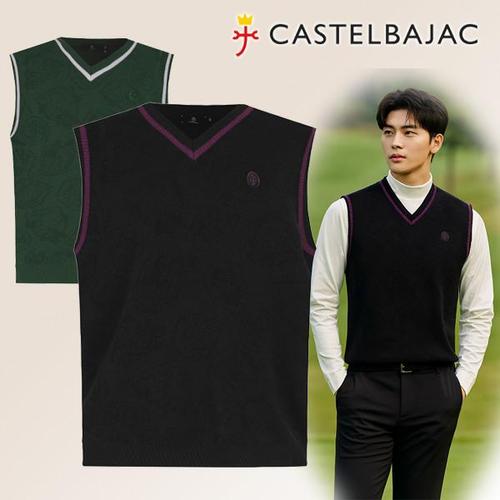 [까스텔바작]남성골프웨어 니트 베스트 가을 엠블럼 패턴 자카드 조끼