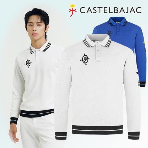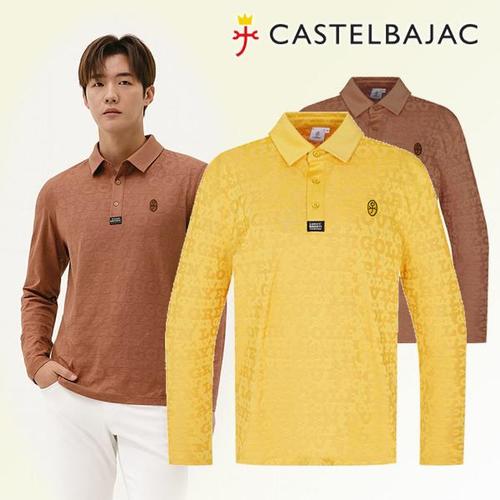 [까스텔바작]모노그램 자카드 카라남성골프웨어 가을 조직감 긴팔 티셔츠