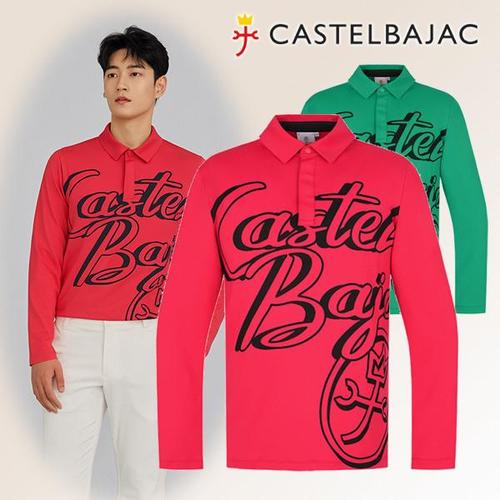 [까스텔바작]신축성 남성골프웨어 가을 앞판 프린트 긴팔 에리 티셔츠