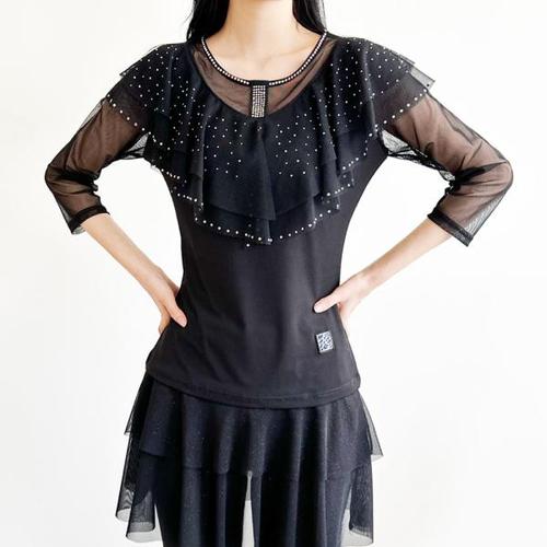 TEMU 메쉬 패널 장식의 우아한 하이넥 블ouses - 단색 신축성 있는 블랙 상의, 기계 세탁 가능, 레이어드, 사무실, 캐주얼 및 평상복용으로 적합