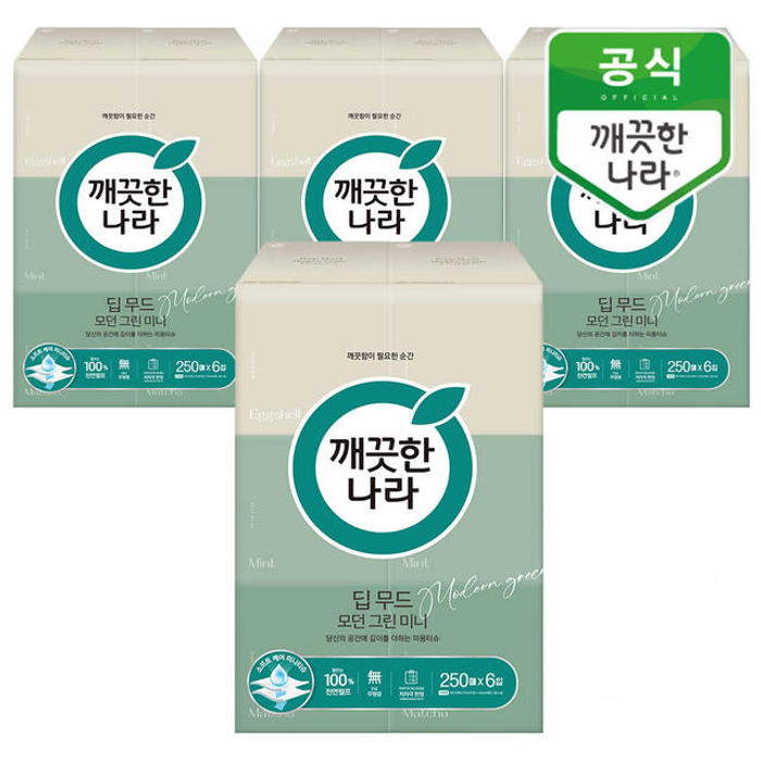 깨끗한나라 주식회사 깨끗한나라 딥무드 모던 그린 미니 미용티슈 250매 6입x4팩