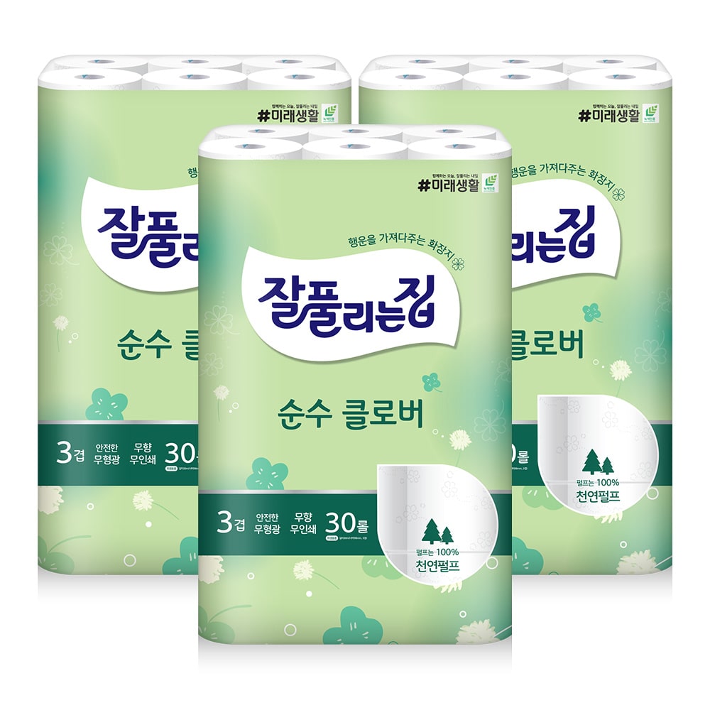 순수 클로버 천연펄프 30M x 30롤 x 3팩