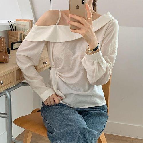 [옷자락] 여자 원숄더 오프숄더 시스루 꼬임 가을 긴팔 블라우스