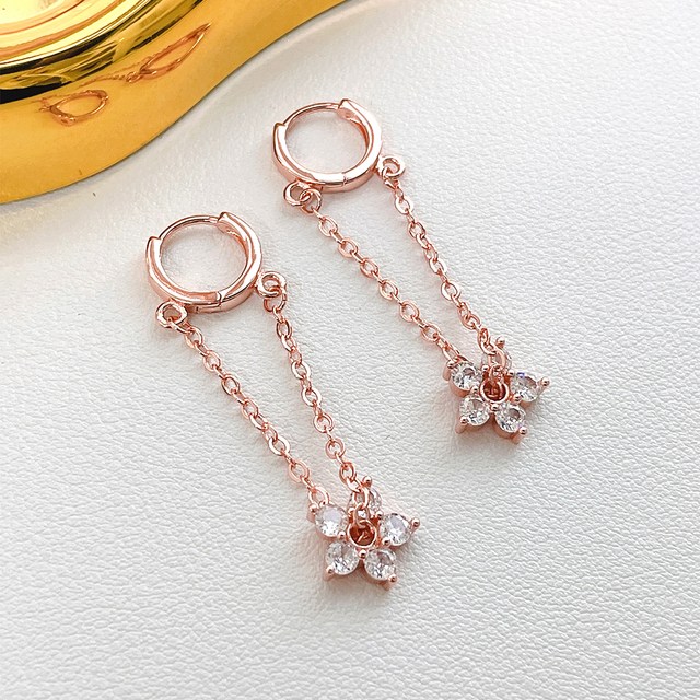 14KGP 큐빅 꽃 로즈골드 포인트 링 귀찌 이어커프