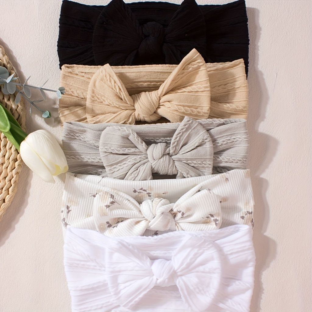 TEMU 아기용 창의적인 나일론 머리띠 5개 세트, 리본 장식, 귀여운 공주풍, 0-2세에 적합, 부드럽고 편안함