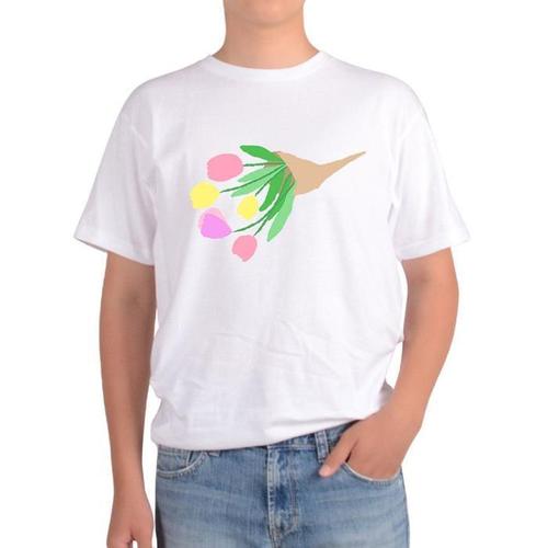 [에이치플러스몰]길단 반팔 USA핏 꽃 분홍꽃 수련화 녹색줄기 노란봉우리 꽃집그림 다양한색상 전사이즈