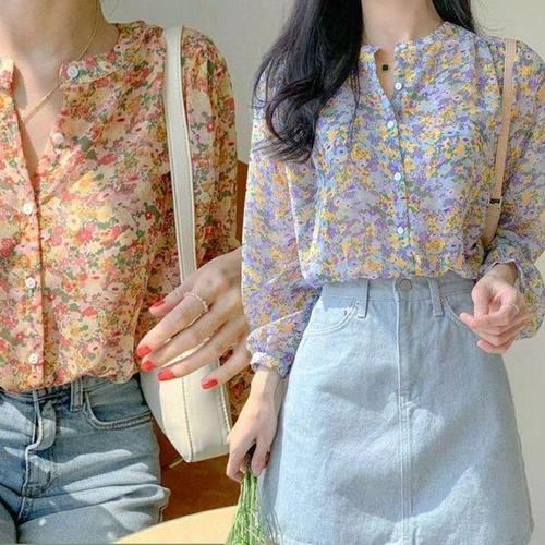 [에이치플러스몰]여성 꽃무늬 플라워 벌룬 쉬폰 블라우스