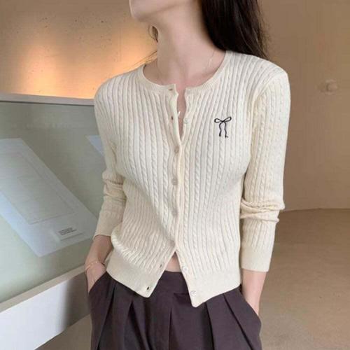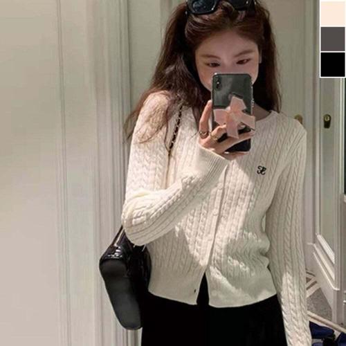 [셀럽하우스]라운드넥 YQJZ4190 프론트 버튼 리본 자수 꽈배기 가디건 5컬러