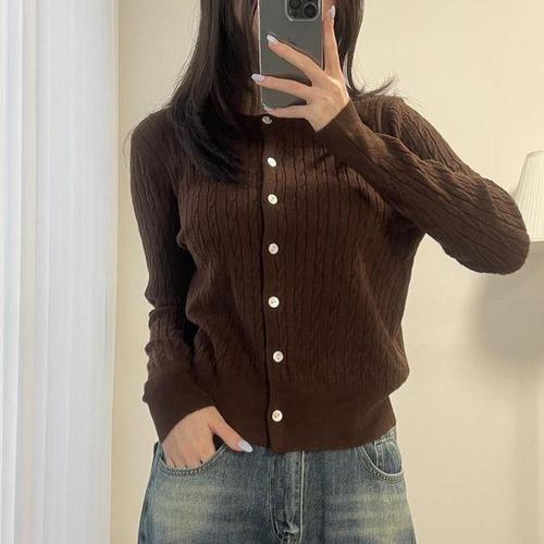 여자 니트 꽈배기짜임 라운드넥 가디건