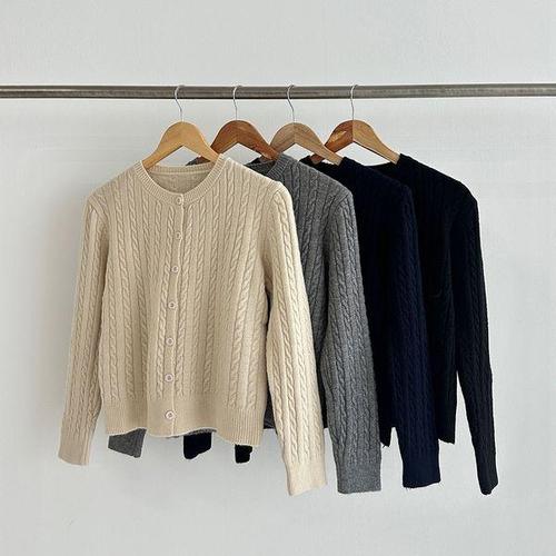 [옷자락]여성 꽈배기 단추 라운드넥 기본 무채색 니트 카디건