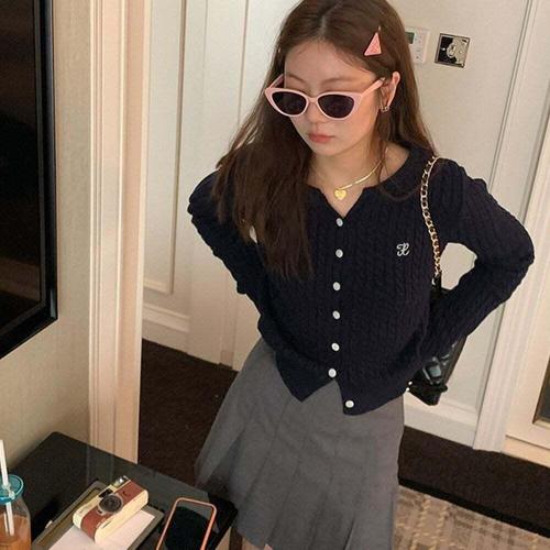 [셀럽하우스]라운드 OIKN9289 크롭 꽈배기 트렌드 가디건 1P 데일리 데일리